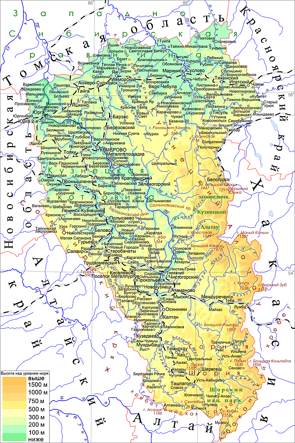 - Административная карта Кемеровской области. Архивировано из оригинала 17 июня 2009 года.