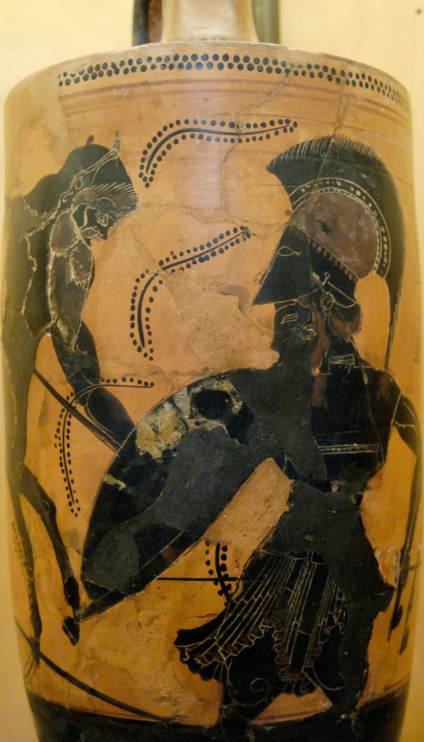 По версии родословной у Гомера в «Илиаде», отец Леонтея[6], сын Корона. По другой версии, сын Элата (у Стесихора Илата) (или сын Атрака[7]) и Гиннеи[8], отец аргонавта Корона, брат Исхия[9].
