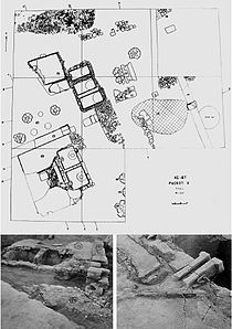 Разрушительная деятельность стала следствием идеологической борьбы, изменения идеологических взглядов, которое выражалось в победе христианства. Подтверждением этого вывода может служить бронзовый алтарь, найденный в полу дома, разрушенного в IV веке. Аналогичные алтари найдены в христианских памятниках IV—V веков[40]. Одновременно с христианством распространялись и другие верования, о чём свидетельствует подвесная глиняная табличка с изображениями древа жизни, оленя со змеей и непонятных символов геометрической формы, которые в целом отражают синкретизм религиозных представлений[41].