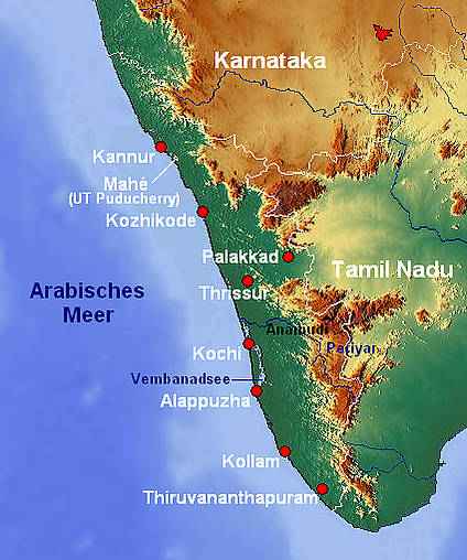| Крупнейшие города | Кочи (Кочин), Кожикоде, Тривандрам, Тришур | ||