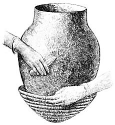 - ёмкостно-донная — изготовление сосуда начинается с его будущей верхней части (венчика, шейки или тулова), в целом — ёмкости сосуда, а завершается донной частью.
