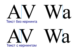 Кернинг отключен: