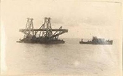 Во время шторма навалом баржи бетонного завода была разрушена эстакада кавказского берега[1]. Из телеграммы в ГУВВР Н. А. Холина и И. М. Павлова от 26 декабря 1944 года: «В течение 15 дней шторм не прекращается. Ветер от 7 до 10 баллов. Вся эстакада обледенела. Воду перебрасывает через эстакаду. Не можем снять с берега буксир „Арарат“ и плавкран. Идет бойка свай на эстакаде. Ветер сбивает людей, их меняем через 4 часа, больше не выдерживают. С воды работы вести нельзя. Волны до 2 метров. Шпренгели закончились. Раньше 2 недель восстановление моста не закончится»[1].