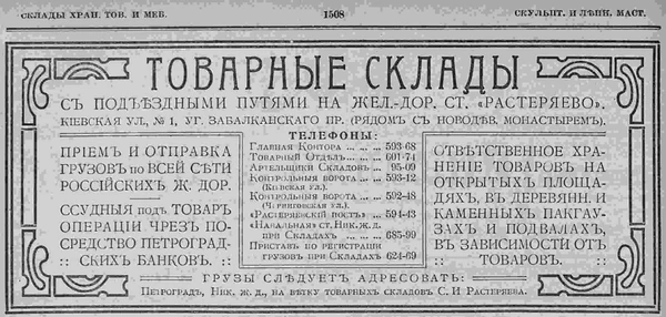 - Бадаевские склады (дом 5; исторические склады Растеряева и обслуживающая их станция Растеряево имели юридический адрес по Киевской ул., д. 1)
