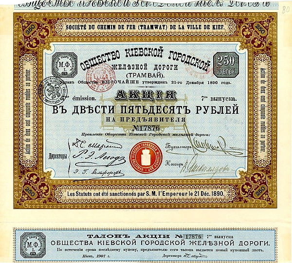 - 1 (13) июля 1892 года введена новая линия (Львовская) Крещатик — М. Житомирская ул. — Б. Житомирская ул. — Сенная пл. (сейчас — Львовская пл.) (c 20 июня (2 июля) 1894 года — электрическая тяга)[14].