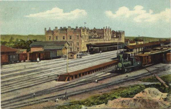 Первый железнодорожный вокзал в Киеве был сооружён по проекту архитектора И. Вишневского в 1867—1870 годах[5], и представлял собой двухэтажное здание из жёлтого кирпича в стиле староанглийской готики[6]. Его длина — 133 м — была немногим меньше размеров пассажирской платформы, которая тянулась на 144 м. Для «высочайших особ» предназначались специальные, роскошно обустроенные помещения, а грязные и тесные залы ожиданий принимали пассажиров третьего, низшего класса.