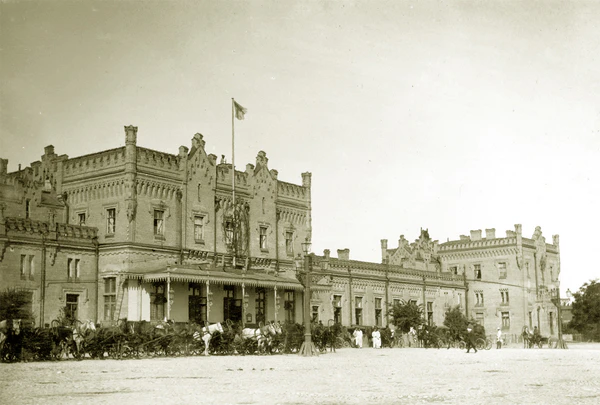 11 (23) августа 1877 год в здании железнодорожного вокзала Киева произошёл сильный пожар. Сооружение восстановили, но ввиду расширения железнодорожного сообщения было решено провести реконструкцию и вокзала, и всей станции, которая должна была улучшить качество обслуживания пассажиров и расширить возможности всего железнодорожного узла.