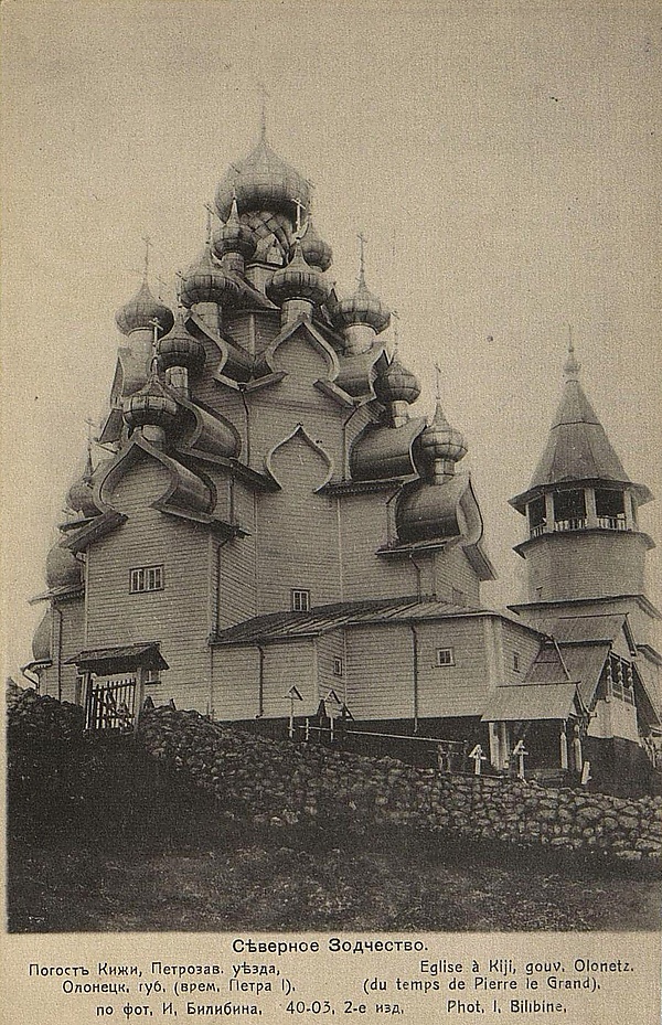 На острове Кижи побывали Иван Билибин (в 1904), Игорь Грабарь (в 1909) и Михаил Красовский (в 1916). Билибин писал: «… нигде мне не приходилось видеть такого размаха строительной фантазии, как в Кижах. … Что за зодчий был, который строил такие церкви!»