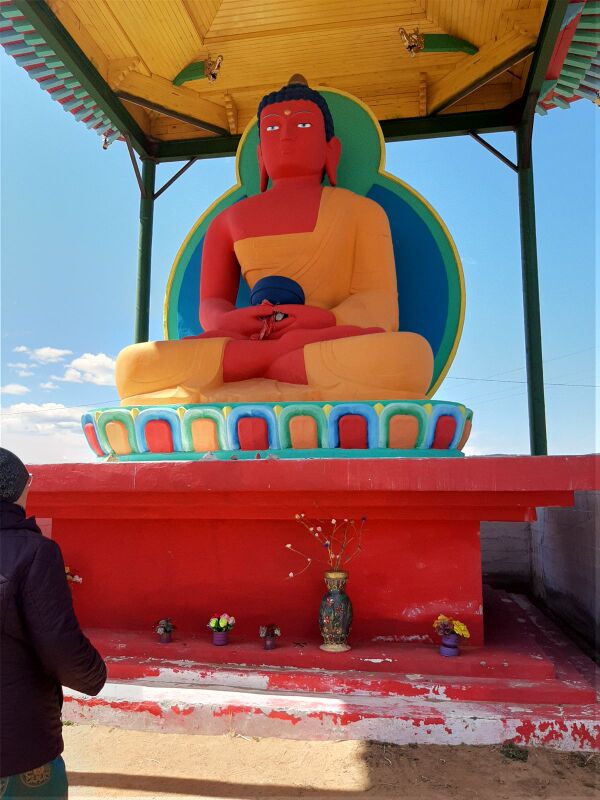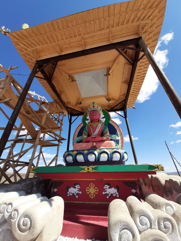 Были установлены большие статуи — восьмиметровая Будды Шакьямуни (будды нашей эпохи), и трёхметровая Бодхисаттвы Майтреи (будды грядущего).