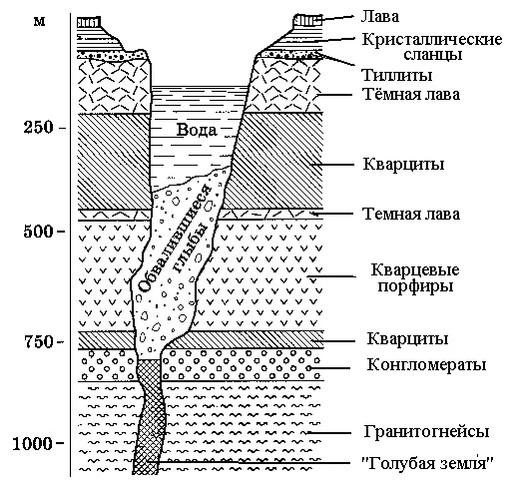 На месте карьера раньше (примерно 70 — 130 миллионов лет назад) находилось жерло вулкана.