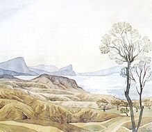 Художники пейзажисты К. Ф. Богаевский, М. А. Волошин и ряд других, работавших на крымской и причерноморской натуре, включаются современными искусствоведами в «Киммерийскую школу живописи». В их пейзажах почти не изображается человек, только стихия первозданной природы, кое-где каменное жильё или крепость, или корабль — дело рук человеческих, еще слишком слабых перед могуществом мироздания[5].