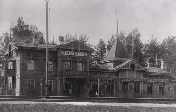 Станция Ямбург была построена на южной окраине города[7] к августу 1869 года[8], но движение поездов запустили только в 1870 году[9] при строительстве линии Балтийской железной дороги из Тосно в Ревель[6][10]. На станции были построены деревянный вокзал и каменная водокачка[7][11]:29[8].