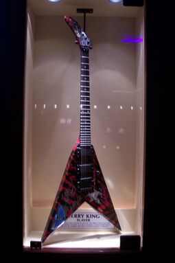 | гитара марки B.C. Rich | Кинг изначально использовал гитары этой компании, но после того как B.C. Rich была выкуплена другим владельцем и качество инструментов перестало удовлетворять музыканта, он перешёл на ESP. После возвращения старого владельца Кинг вновь использует данную марку. Керри разработал собственную модель гитары — KKV. |