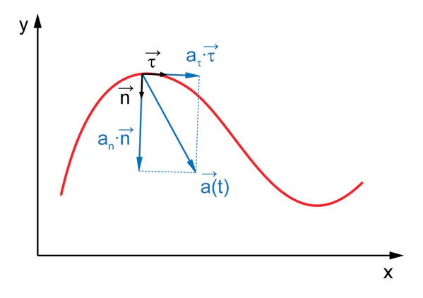 Ускорение, таким образом, , где , а , где — мгновенный радиус кривизны.