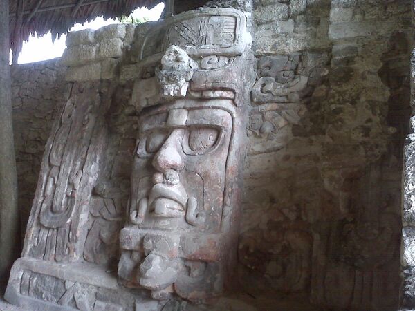 - В Яхчилане родовой царь сидит в солнечном картуше, а его жена — в лунном полумесяце.