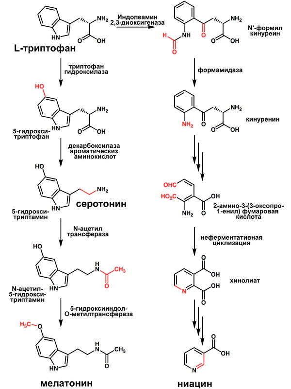 Кинуренин — промежуточный продукт обмена триптофана при его биологическом превращении в никотиновую кислоту[2].