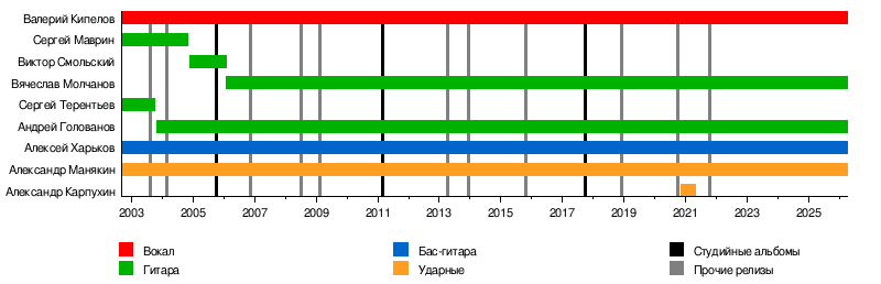 | Сергей Маврин | 2002—2004 | соло/ритм-гитара |