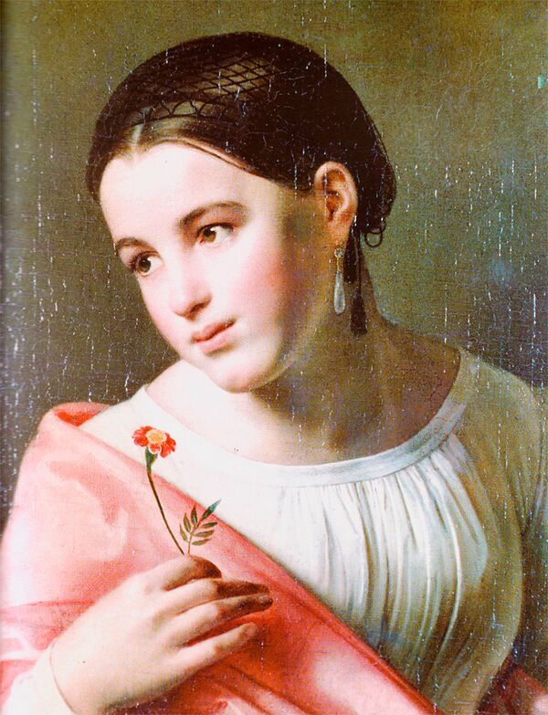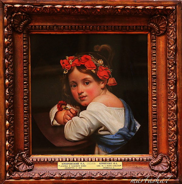 - Кипренский Орест Адамович: Картина «Девочка в маковом венке с гвоздикой в руке» («Мариучча»)