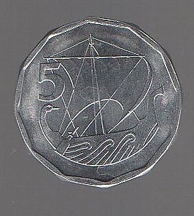 | 5 центов | в центре герб Республики Кипр, внизу год выпуска, вокруг герба название эмитента на трёх языках (слева направо): «CYPRUS · KYПРОΣ · KIBRIS» | рисунок головы быка в неолитическом стиле, число 5 | 1983, 1985, 1987, 1988, 1990—1994, 1998, 2001, 2004 | |