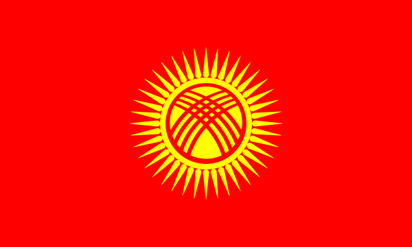 Государственный флаг Кыргызской Республики был утверждён Жогорку Кенешем 3 марта 1992 года. Флаг представляет собой прямоугольное полотнище красного цвета с соотношением сторон 3:5, в центре которого размещён золотистый солнечный диск с сорока лучами[39]. Внутри диска красным цветом изображён тюндюк кыргызской юрты.