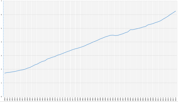 Постоянное население Киргизии на 1 июля 2025 года составляет 7 337 000 человек. Это значительно больше, чем проживало в стране в 1959 (2 065 000), 1970 (2 935 000), 1979 (3 523 000), 1989 (4 258 000), 1999 (4 823 000) годах. До 1960-х годов население республики быстро росло за счёт миграционного и естественного прироста; последний был особенно значительным у сельских киргизов, узбеков и других среднеазиатских народов. 25 ноября 2015 года население Киргизии достигло 6 млн человек, а 19 октября 2022 года родился 7-миллионный гражданин Киргизии.