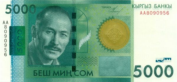 | 5000 | 156×73 | зелёный | киргизский советский актёр Суйменкул Чокморов (1939—1992) |