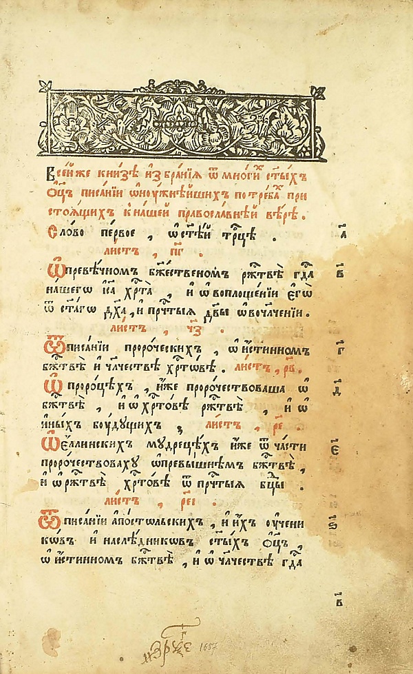 В сборнике был впервые напечатан индекс истинных и ложных книг для регламентации круга чтения.