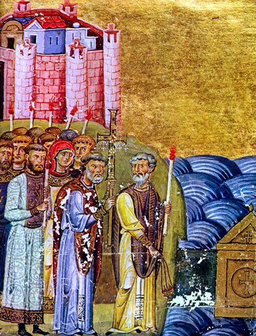В январе 861 года, по пути в Хазарию, во время пребывания в Херсонесе Таврическом, который в то время был частью Византийской империи, братья обрели мощи папы Климента, согласно легенде, сосланного в Херсонес и там утопленного (мощи были обретены на полузатопленном островке, как полагают, в нынешней Казачьей бухте Севастополя). Тем не менее, древняя церковная традиция ничего не знает о пребывании папы Климента в Херсонесе, и, по некоторым предположениям, с папой Римским был отождествлён некий местночтимый святой того же имени, погребённый на полузатопленном островке[17][26].