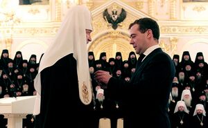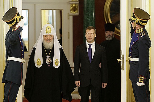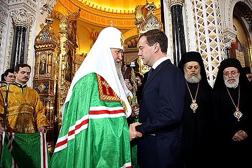 1 февраля состоялась интронизация патриарха Кирилла в храме Христа Спасителя. На богослужении присутствовали Дмитрий Медведев с супругой, Владимир Путин, президент Молдавии Владимир Воронин, а также Наина Ельцина[21]. Первым человеком, которого причастил патриарх Кирилл, была Светлана Медведева[22].