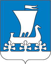 Описание герба: «в лазоревом поле серебряный круг, обременённый лазоревым пламенем о двух языках (правый из которых меньше и подобен капле) и сопровождённый по сторонам двумя серебряными направленными от круга носовыми частями древних ладей, а внизу — отвлечённым серебряным волнисто выщербленным поясом».
