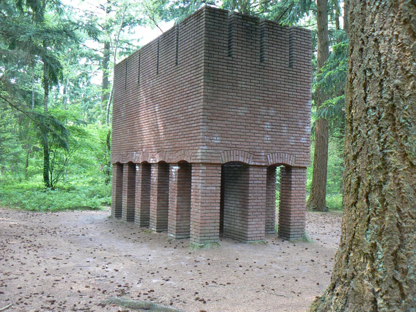 Архитектурный подход Киркебю неразрывно связан с его скульптурной практикой, где основным материалом выступал кирпич. Значительное влияние на создание его монументальных кирпичных построек оказало изучение архитектуры майя. Возводимые им сооружения — лабиринты, башни и стены — зачастую лишены утилитарной функции. Эти объекты задумывались как «здания без цели», предназначенные для физического взаимодействия зрителя с пространством и органичного диалога с окружающим ландшафтом[10].[11]