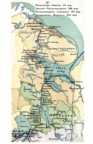 В 1919 г. часть дороги (в Кемском и Александровском уездах Архангельской губернии) контролировалась Временным правительством Северной области и подчинялась заведующему путями сообщения области в г. Архангельске[8].