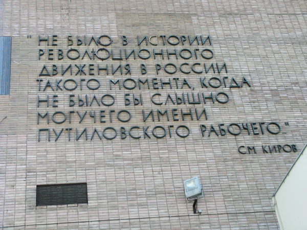 - Цитата из речи Кирова на брандмауэре Производственного корпуса Санкт-Петербург, пр. Стачек, д. 47, литера Е.