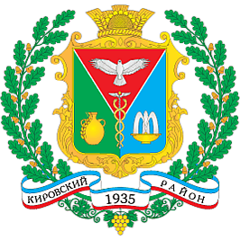 Решением Кировского районного Совета № 214 от 21 марта 2008 года «О гербе Кировского района» утверждено положение о содержании, описании и порядке использования герба Кировского района, согласно которому малый герб района сопровождается картушем, дубовым венком и лентой с надписью с названием района[40]. После произошедшего в феврале—марте 2014 года присоединения Крыма к Российской Федерации решением Кировского районного Совета от 26 октября 2016 г. № 415 утверждён новый герб района на основе малого герба района: