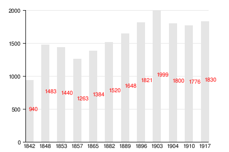 Изменение численности населения прихода Каприо с 1842 по 1917 год[5][6]:
