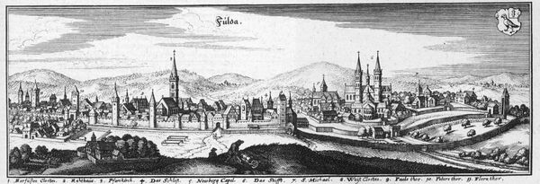 В 1623 году, продолжая традицию академических странствий, Кирхера отрядили в Хайлигенштадт, по пути он смог посетить Фульду и родную Гайзу, опустошённые за год до того враждующими армиями. В Фульде ему предложили снять иезуитское облачение, но он с негодованием отказался, заявив, что готов даже принять мученическую кончину. В результате по пути в Эйзенах 6 августа 1623 года его ограбили дезертиры, отобрав даже книги, которые он нёс с собой; однако их главарь пожалел молодого человека и не стал его убивать. Спустя два дня Афанасий прибыл в Хайлигенштадт, где занял место учителя, продолжая аскетические и научные занятия самостоятельно. Для местной церкви Богородицы он, как и в Кобленце, построил солнечные часы, которые самостоятельно и установил[18]. Во время визита в город курфюрста Майнца — Иоганна Швайкхарда — Кирхера назначили ответственным за встречу, он написал приветственный адрес и сценарий театрального представления. Приветственные речи звучали на восьми языках, а для постановки были сконструированы сценические механизмы и эффекты, из-за которых собратья по ордену даже заподозрили Афанасия Кирхера в колдовстве. На курфюрста молодой иезуит произвёл такое впечатление, что его немедленно перевели в резиденцию в Ашаффенбург, но о его пребывании при дворе почти ничего не известно. Исповедником курфюрста был иезуит Иоганн Рейнхард Циглер, выпускник германского коллегиума в Риме. В этот период Кирхер по поручению князя обследовал древнюю римскую дорогу, так называемую Bergstrasse (между Дармштадтом и Гейдельбергом); на составление её карты ушло три месяца[19].