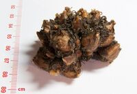 Луковица имеет буроватую или почти чёрную окраску, от неё отходят удлинённые подземные побеги[2].