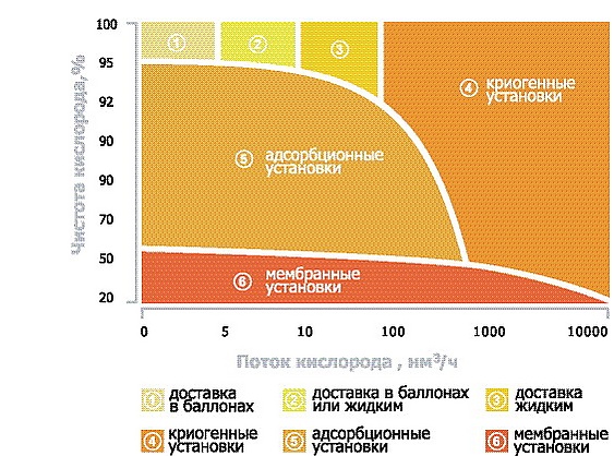 - Относительно низкая чистота получаемого кислорода — не более 95 % для адсорбционных и не более 45 % для мембранных