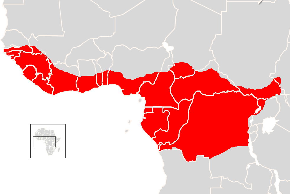 Кистеухие свиньи обитают в Западной и Центральной Африке, их ареал простирается от Сенегала до Демократической Республики Конго. Встречаются как в лесах, так и в саваннах и болотистых местностях, избегая лишь чересчур засушливых ландшафтов.