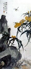 В творчестве Ци Байши, одного из наиболее известных китайских художников, жившего на рубеже XIX—XX вв., отразились классические традиции и экспериментальные поиски. С подарка от деда тушечницы, палочки туши, кисти и копировальной бумаги начались годы упорного труда и путь к славе. Особенную популярность принесли художнику картины, выполненные в жанре «цветы — птицы». Он любил изображать пионы, лотосы, цветы дикой сливы, вьюнки травы и т. п. Особое пристрастие питал художник к водным обитателям: рыбы, креветки, крабы, лягушки ценились мастером как объекты чрезвычайной художественной выразительности. Ци Байши не переставал удивляться красоте мира, сочности, свежести и яркости плодов граната, персиков, винограда, ягод вишни, которые писал виртуозно[6].