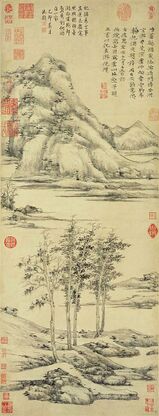 - Горные пейзажи (山水, shan shui, то есть «горы и воды»).