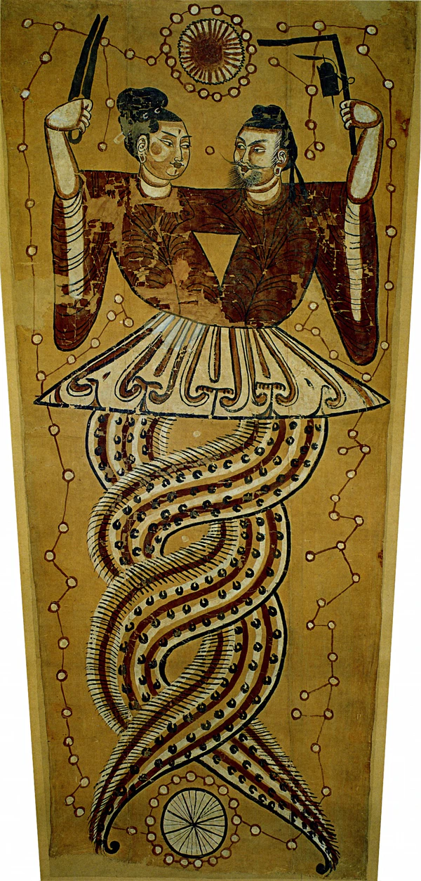 Миф о хаосе (хунь дунь), являющем собой бесформенную массу, по видимому, относится к числу древнейших (судя по начертанию иероглифов хунь и тунь, в основе этого образа лежит представление о водяном хаосе). Признаки нерасчлененности (сросшиеся ноги, зубы) обнаруживаются и у ряда мифических первопредков. Согласно трактату «Хуайнань-цзы», когда не было ещё ни неба, ни земли и бесформенные образы блуждали в кромешной тьме, из хаоса возникли два божества. Представление об изначальном хаосе и мраке отразились и в термине «кайпи» (букв. «отделение» — «начало мира», которое понималось как отделение неба от земли). В «Хронологических записях о трех и пяти правителях» («Сань у ли цзи») Сюй Чжэна (3 в. н. э.) говорится, что небо и земля пребывали в хаосе, подобно содержимому куриного яйца. Отделение неба от земли происходило по мере роста Пань-гу, с которым связывается и происхождение явлений природы: с его вздохом рождался ветер и дождь, с выдохом — гром и молния, он открывает глаза — наступает день, закрывает — наступает ночь. Когда Пань-гу умирает, его локти, колени и голова превращаются в пять священных горных вершин, насекомые на его теле — в людей. Миф о Пань-гу свидетельствует о наличии в Китае характерного для ряда древних космогонических систем уподобления космоса человеческому телу и соответственно о единстве макро- и микрокосма (в период поздней древности и средневековья эти мифические представления закрепились и в других областях знаний, связанных с человеком: медицине, физиогномике, теории портрета и т. п.). Более архаичным в стадиальном отношении следует признать, видимо, реконструируемый цикл мифов о прародительнице Нюй-ва, которая представлялась в виде получеловека-полузмеи (или дракона), считалась создательницей всех вещей и людей (но миф о создании ею вселенной неизвестен). Согласно одному из мифов, она вылепила людей из лёсса и глины. Поздние варианты мифа связывают с ней и установление брачного ритуала. Если Пань-гу не творит мир, но сам развивается вместе с отделением неба от земли, то Нюй-ва предстает и как своеобразный демиург. Она чинит обвалившуюся часть небосвода, отрубает ноги гигантской черепахе и подпирает ими четыре предела неба, собирает тростниковую золу и преграждает путь разливу вод («Хуайнань-цзы»). Можно предполагать, что Пань-гу и Нюй-ва изначально входили в различные племенные мифологические системы, образ Нюй-ва возник либо в юго-восточных областях древнекитайских земель, либо в районе культуры Ба в юго-западной провинции Сычуань, а образ Пань-гу — в южнокитайских областях.