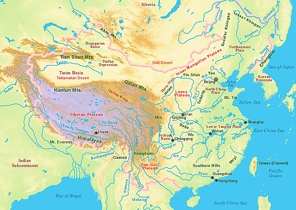 Большинство китайских династий размещали свою резиденцию в сердце Китая, его этнически китайской части — долине реки Хуанхэ. Эти династии расширяли свои владения за счёт иностранных территорий Внутренней Монголии, Маньчжурии, Синьцзяна, Тибета, Вьетнама и Кореи. Хотя последняя маньчжурская династия Цин, наследниками которой считают себя КНР и Китайская Республика (Тайвань), включила в Китай большинство вышеупомянутых земель, сам Китай имеет определённые древние границы — Великая китайская стена на севере, Тибетское плато на западе и джунгли Индокитая на юге.