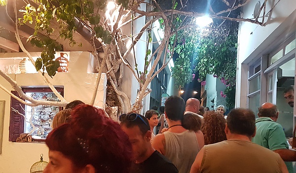 Узкие улочки, однородные побеленные фасады двухэтажных домов, внешние лестницы, которые ведут отдельно на крышу, арки, яркие двери и ставни образуют своеобразный образ кикладской архитектуры и сочетаются с крутой каменистой местностью острова[4].
