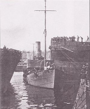 Неизвестным оставался вопрос о возможности прохода Дарданелл; в Пирее Ферсман не смог связаться с русским послом в Константинополе и уже 22 октября направился к проливу. У Чанак-кале стоявшие на якорях французские и итальянские стационеры сигналами попытались остановить «Китобой», но Ферсман не обращал на них никакого внимания. Как выяснилось в Константинополе, «Китобой» по соглашению, заключённому недавно с англичанами, должен был спустить Андреевский флаг во время прохода турецких проливов[2]. Телеграмма с соответствующим приказанием опоздала в Пирей.