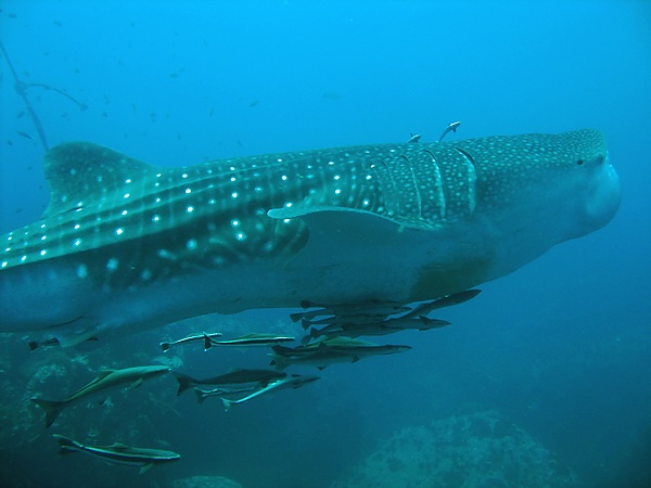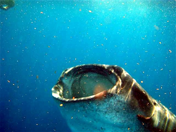 Китовая акула, питающаяся планктоном, в целом рассматривается как не представляющая абсолютно никакой угрозы для людей[8]. Эта инертная, вялая, медленно плавающая рыба никогда не нападает на человека, чем охотно пользуются ныряльщики, часто подплывающие вплотную к ней. Один из американских океанологов, встретившийся с китовой акулой, писал[36]: