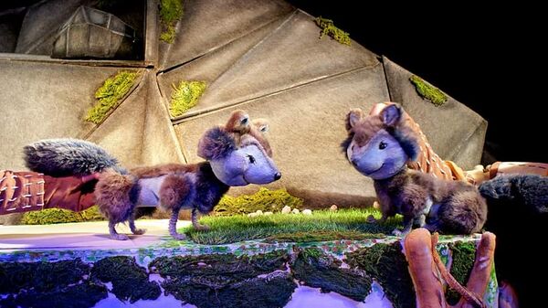 Декорации и куклы спектакля в Железногорском театре кукол «Золотой ключик» (художник Анастасия Гончарова) по повести Анастасии Строкиной «Кит плывёт на север»