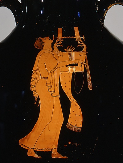 Кифара — один из самых распространённых музыкальных инструментов в Древней Греции. Считается, что в Грецию инструмент был завезён из Египта и Малой Азии. Страбон называл её «азиатской»[2].
