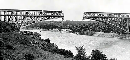 Меннонит И. Вибе упоминает, что 13 апреля 1918 года мост был взорван красными после отступления войск из Никополя в результате интервенции германских войск[26]. Красноармеец И. Федорченко упоминает про взрыв большевиками средины моста с составом гайдамаков[27]. О взрыве моста красными упоминается в мемуарах жительницы Александровска М. Гордеевой[28].
