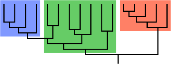 Любая клада рассматривается как монофилетическая группа организмов и может быть изображена с помощью кладограммы (диаграммы происхождения организмов в форме дерева, «родословной»).
